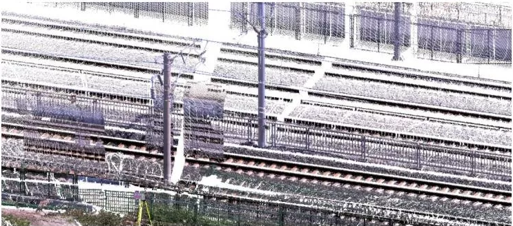 南宁某轨道在建中,需快速获取周边场景数据并绘制轨道中心线与轨道线,完成与轨道设计图的对比与检测分析。由于现场环境限制,遮挡严重,全站仪与GPS等常规设备无法快速进行作业,而且其高质量及高精度的要求也为用户的工作增加难度。而Trimble SX10以其600米扫描距离与无需拼接的优势能够完美解决此问题,可快速获取场景数据进行数据处理。