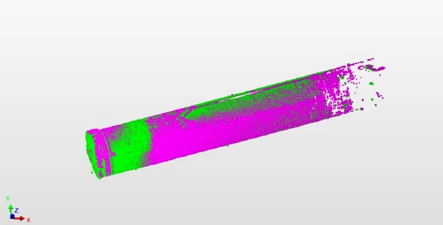 在Trimble RealWorks软件里批量导入两期或多期点云,对两期点云进行三维检测,通过数据偏差分析隧道的整体变化情况。
