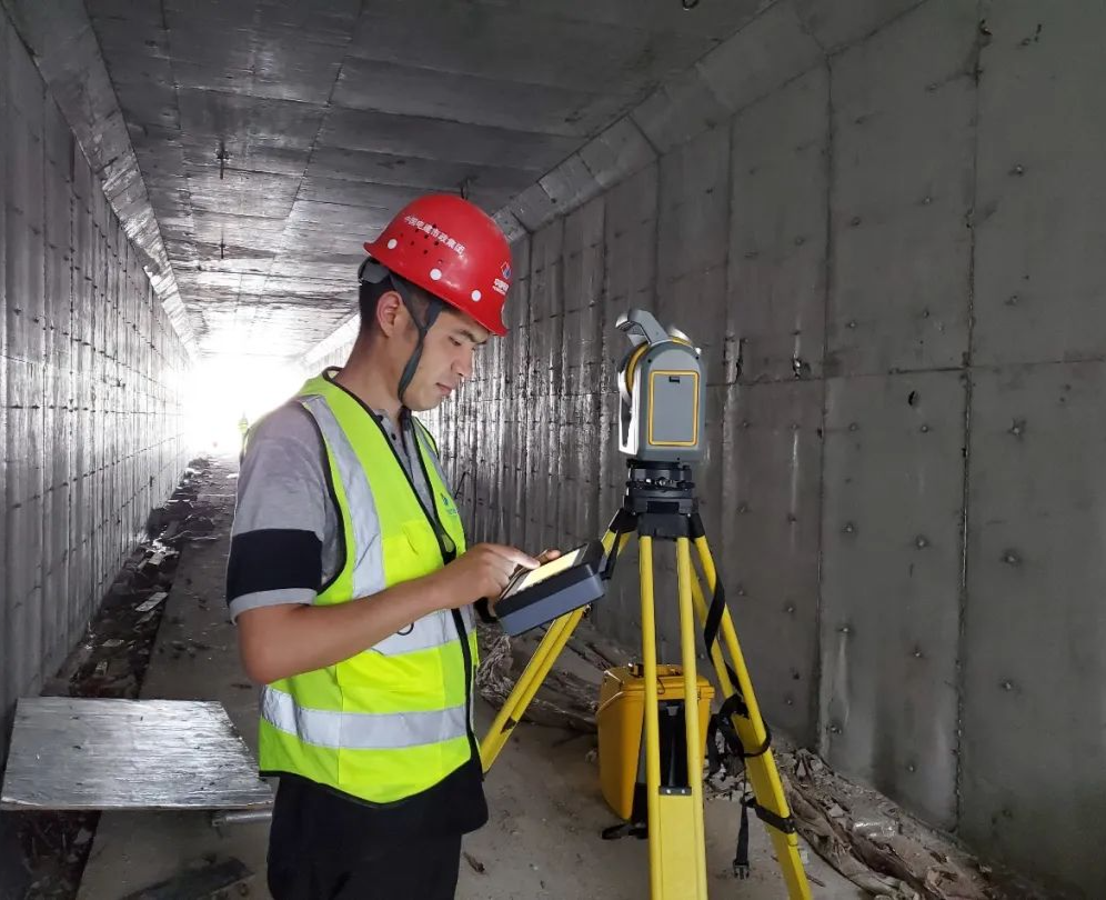 图片1:测量人员利用SX10对管廊进行三维扫描