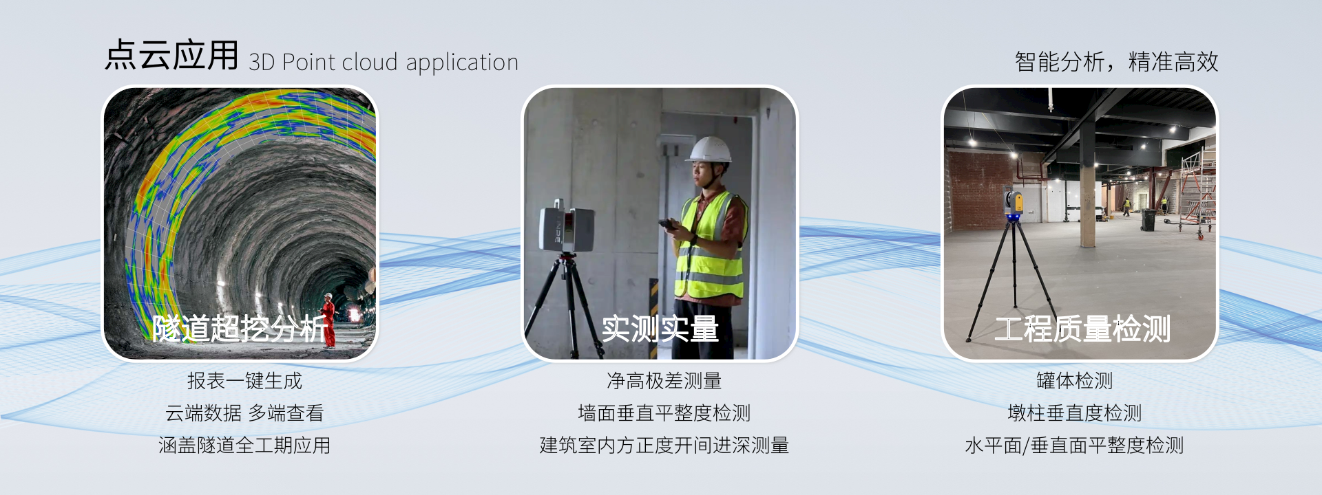 公司致力于为客户提供高效稳固可靠的产品及解决方案,坚持以客户需求为导向,提高客户生产率为目标,不断引入并研发先进的产品和技术,已服务客户涵盖高校科研、中铁中建、农林环保、市政管网、电力国土、水利交通、建筑规划、石油石化、智慧物联、边缘测绘等千余家企事业单位。依托多年行业经验,紧扣国家建设“实景三维中国”目标任务,大力推广新型测绘技术,并注重定制化研发和成果转化,逐步形成以三维激光扫描仪+点云定制开发、高精GNSS+高精全站+智慧监测云平台、高精北斗模块+实景三维GIS综合数据云平台为核心的业务板块,解决三维点云应用最后一公里问题和基坑桥梁大坝山体等灾害病害的智能化无人化监测预警问题,并通过与企业、政府、交通、自然地理、人文等行业的数据叠加融合,形成实景三维场景下的“孪生体”或“孪生业态”,助力“智慧中国”建设步伐,进而提升国家治理体系和治理能力现代化。