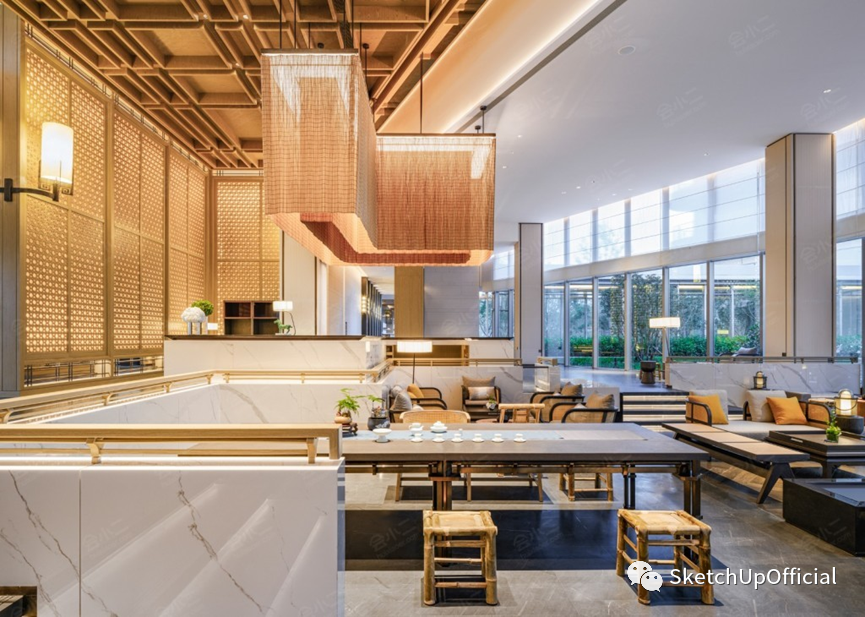 成都东安湖木棉花酒店是本届大运会参赛运动员的入住酒店之一,它位于东安湖公园核心位置,与大运会主场馆相邻。该项目采用了SketchUp + BIM结合天宝三维扫描与BIM放样机器人技术,实现了将近50%建设周期节省,成为全周期全体系BIM正向设计到施工落地的标杆案例。无论甲方、深化设计与BIM顾问、总包、分包、加工厂商都受益于在SketchUp平台全三维环境中最轻便直观的沟通协调,以及BIM5D工程量对于成本的把控,避免了传统工作流中大量的沟通协调以及变更与返工。不像诸多项目采用BIM翻模的无力与鸡肋,该项目真正地释放了BIM的潜能。