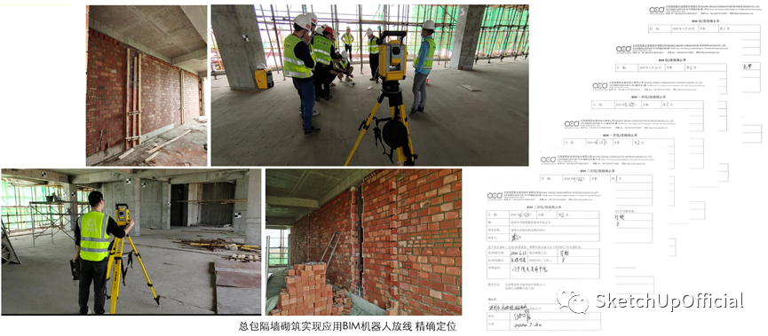 应用天宝的BIM放样机器人,把所有的主控线全部落到施工现场,基于BIM模型,无纸化放线,提高砌筑精度高,减少后期精装施工拆改,提高饰面材料加工标准化精度,确保现场与模型一致。同时还有放线尺寸图及移动端可视化放线VR辅助。
