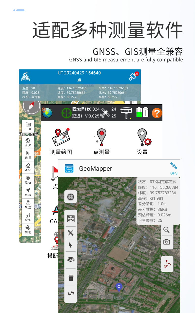 高程:1.5cm+1ppm倾斜补偿(60°以内)
