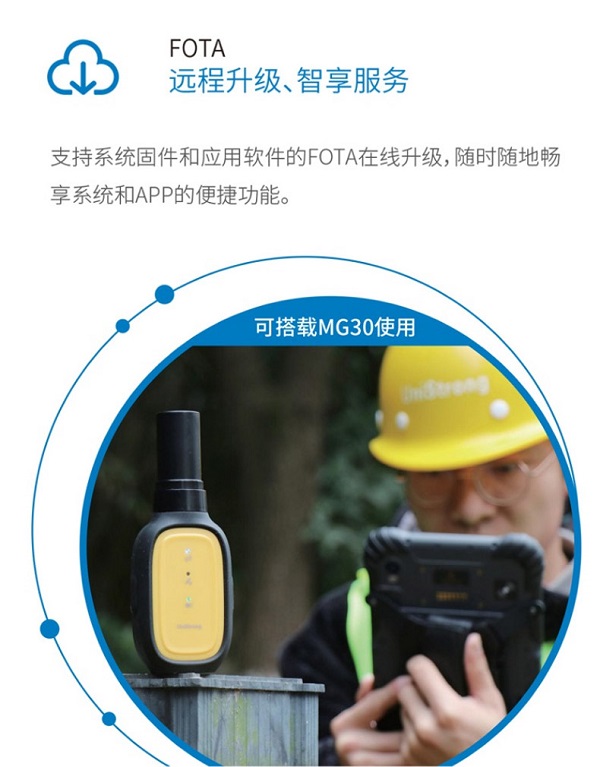 支持L1+L5双频多系统GNSS卫星接收,支持北斗3号解算,在接入差分信号源的情况下可达厘米级定位精度,支持中国移动SDK差分服务接入一键畅享高精度。
