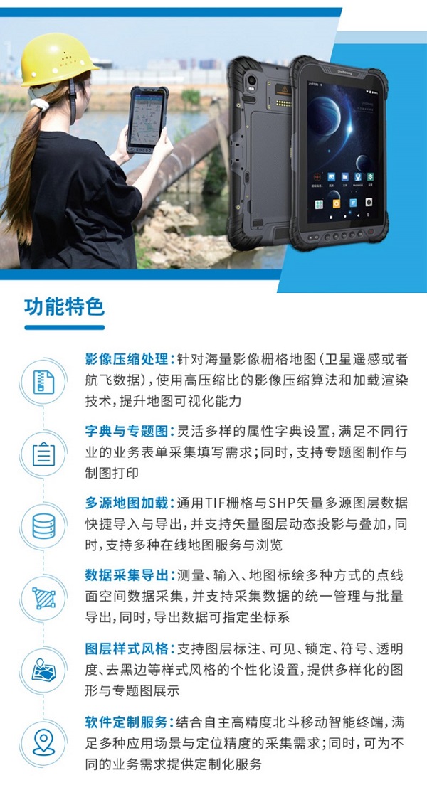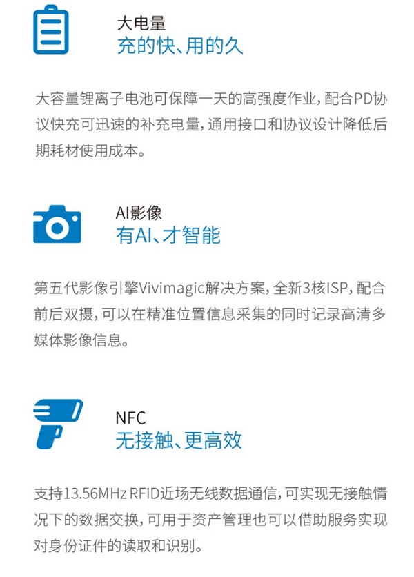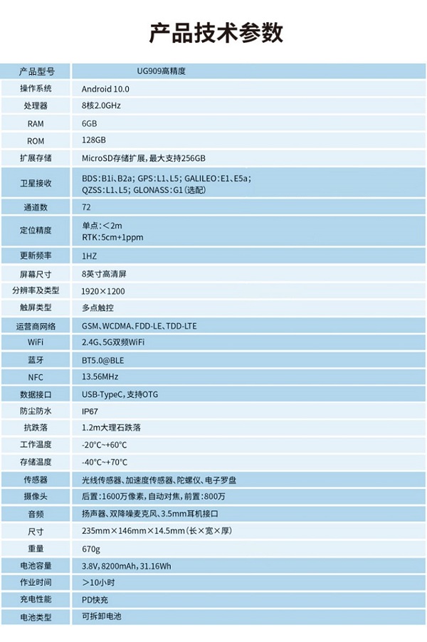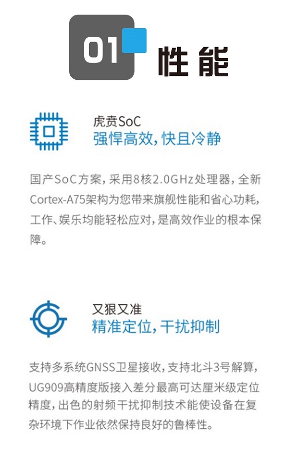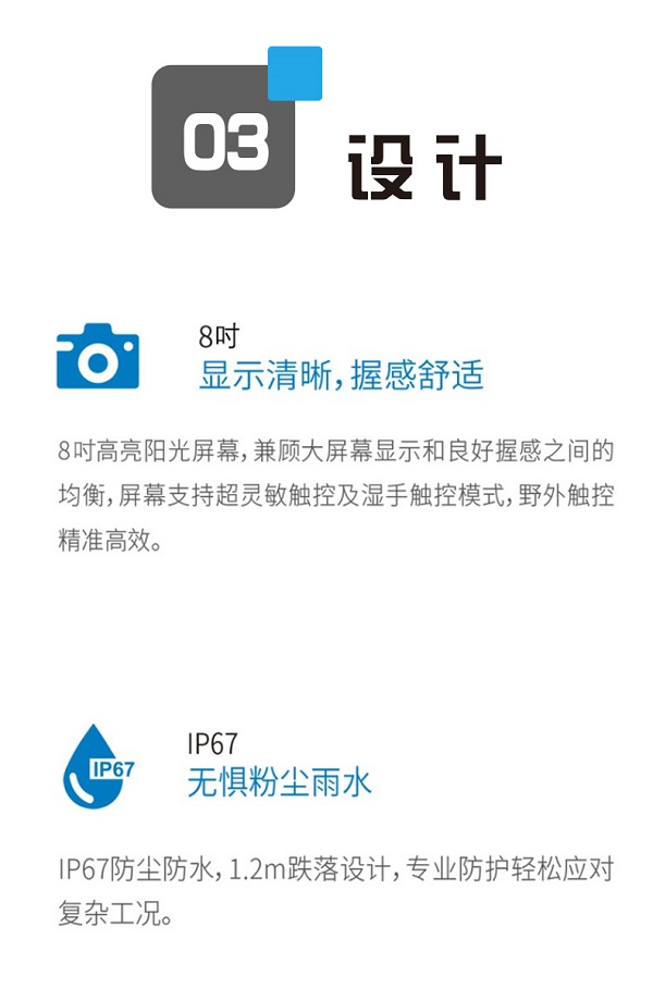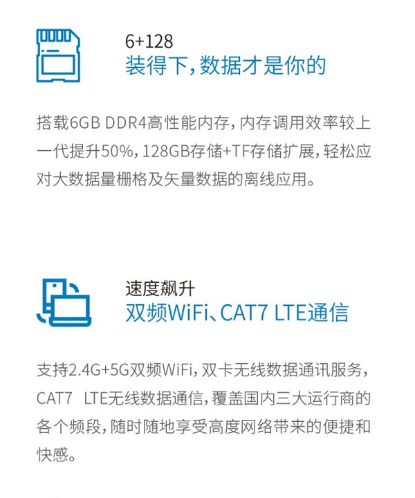搭载6GB DDR4高性能内存,内存调用效率较上一代提升50%,128GB存储+TF存储扩展,轻松应对大数据量栅格及矢量数据的离线应用。
