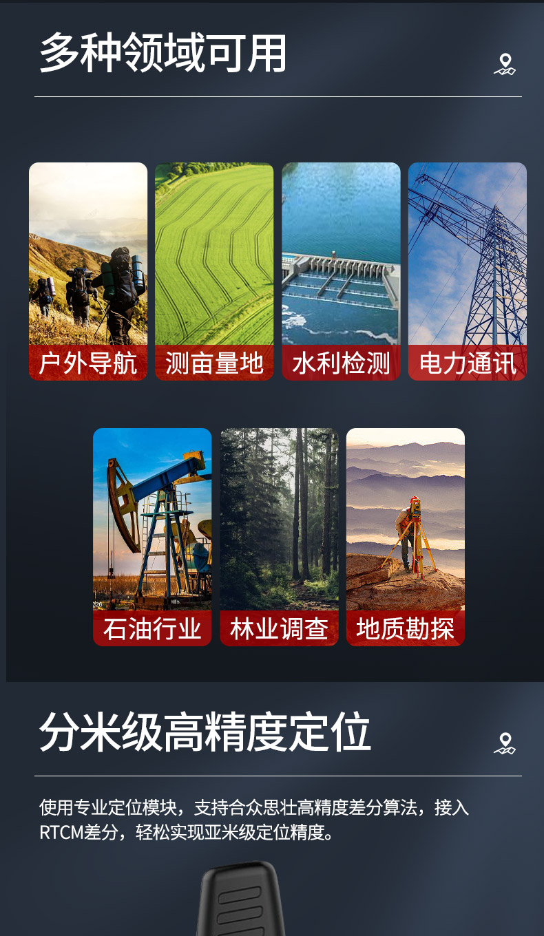 使用专业定位模块,支持合众思壮高精度差分算法,接入RTCM差分,轻松实现分米级定位精度。