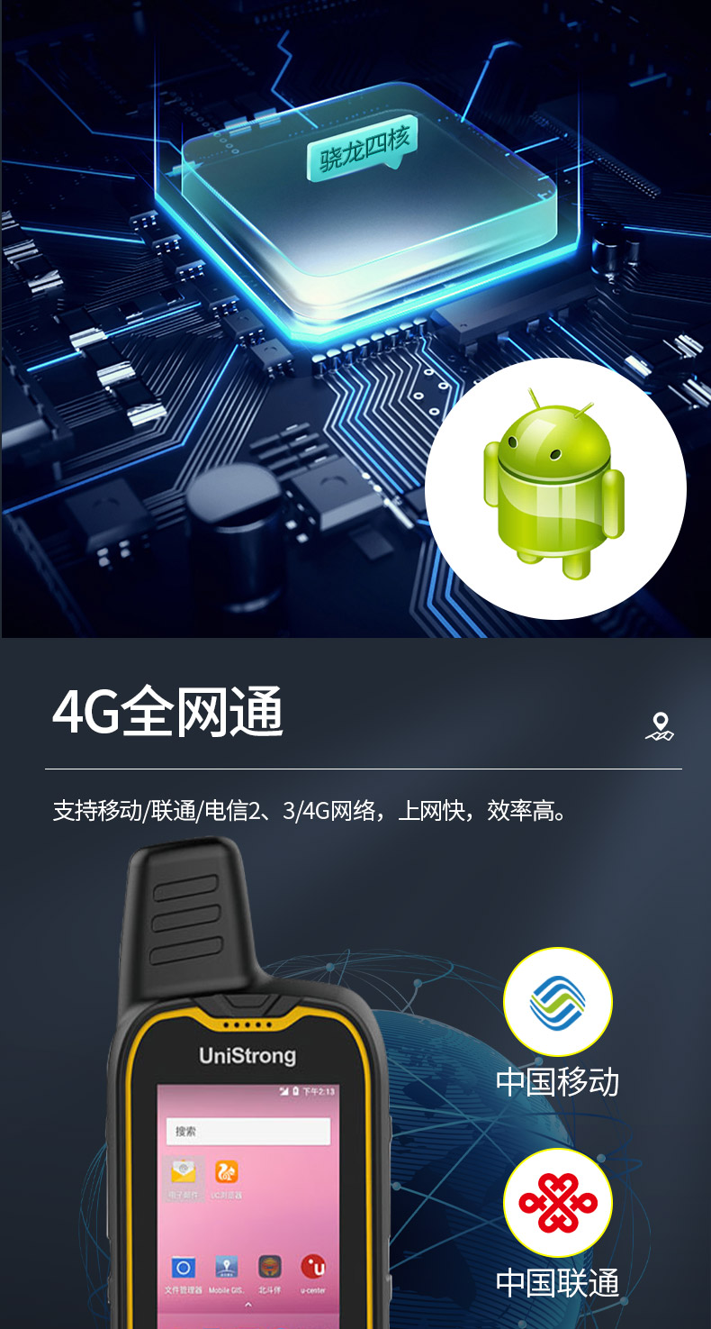 搭载骁龙四核高效处理器,Android 7.0操作系统。支持用户自定义安装行业应用软件,满足更丰富的应用场景。