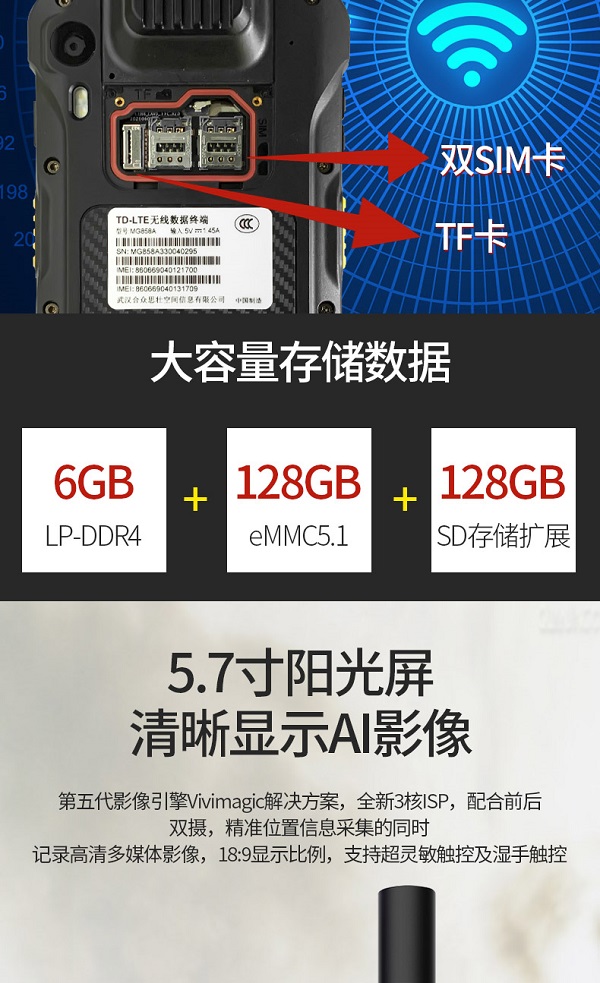 第五代影像引擎Vivimagic解决方案,全新3核ISP,配合前后双摄,可以在精准位置信息采集的同时记录高清多媒体影像信息。