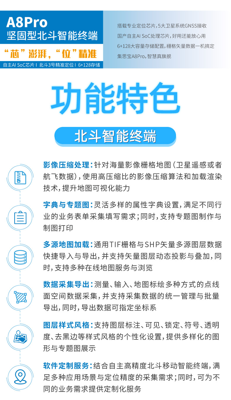 搭载6GB DDR4高性能内存,内存调用效率较上一代提升50%,128GB存储+TF存储扩展,轻松应对大数据量栅格及矢量数据的离线应用。