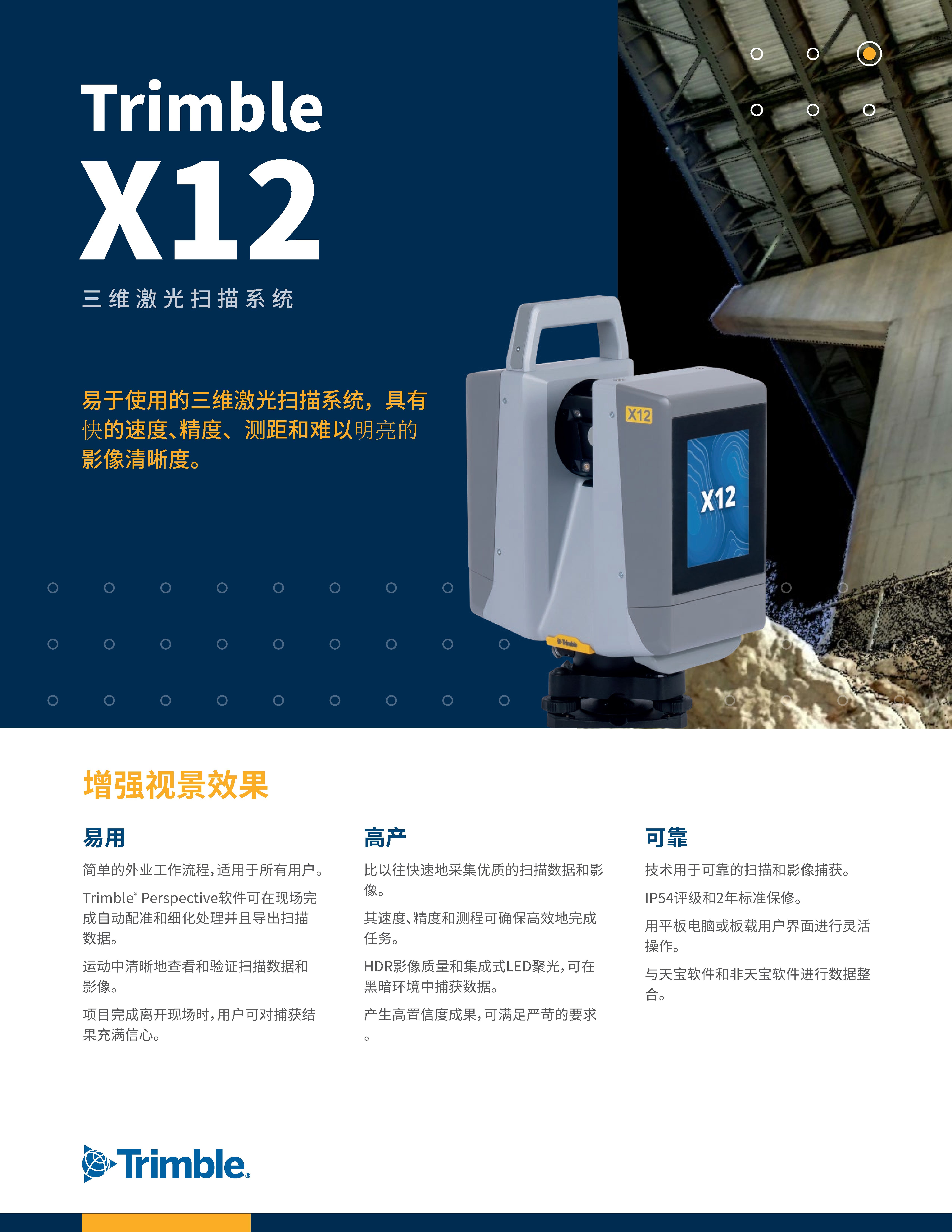 Trimble X12 IP54评级和2年标准保修。