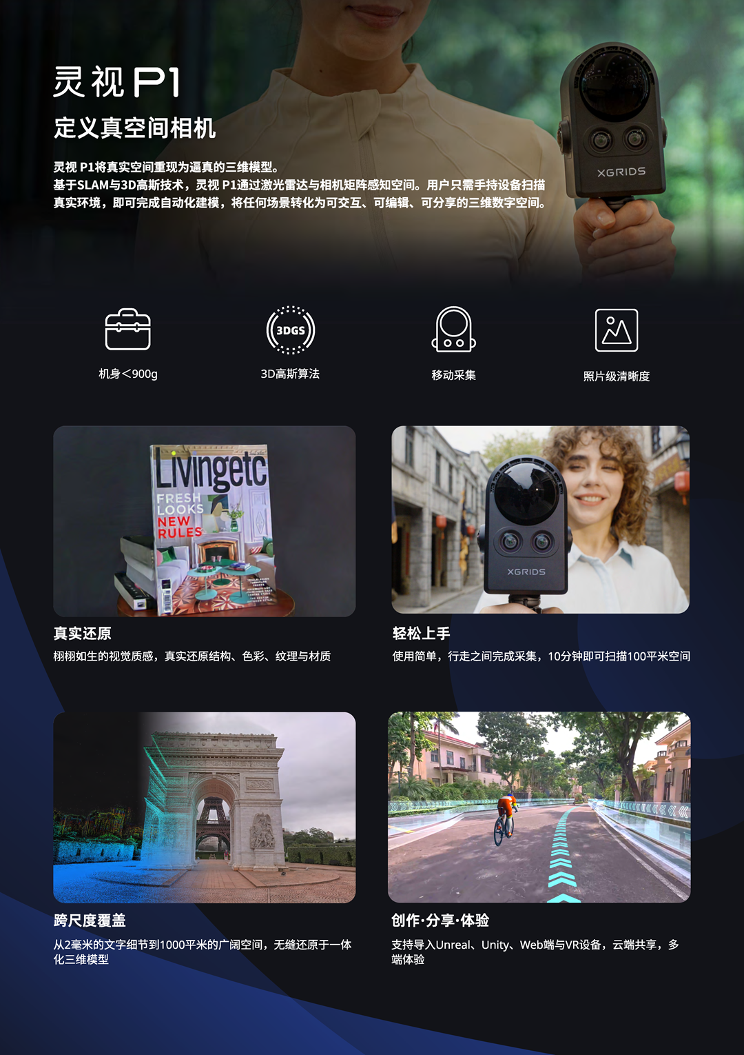 灵视 P1将真实空间重现为栩栩如生的三维模型融合3D高斯与SLAM技术,任何场景都能被转化为可探索、可创作、可分享的数字空间全新的内容时代,由此开启