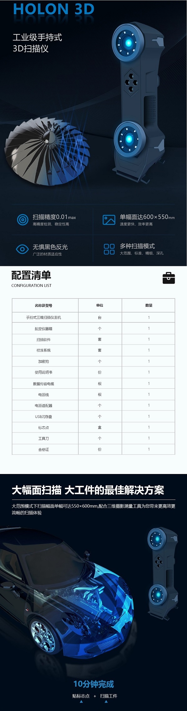 3、测量精度:标准模式:0.02mm 精细模式:0.01mm,分辨率高达0.01mm,不受环境影响、工件结构和用户能力限制;