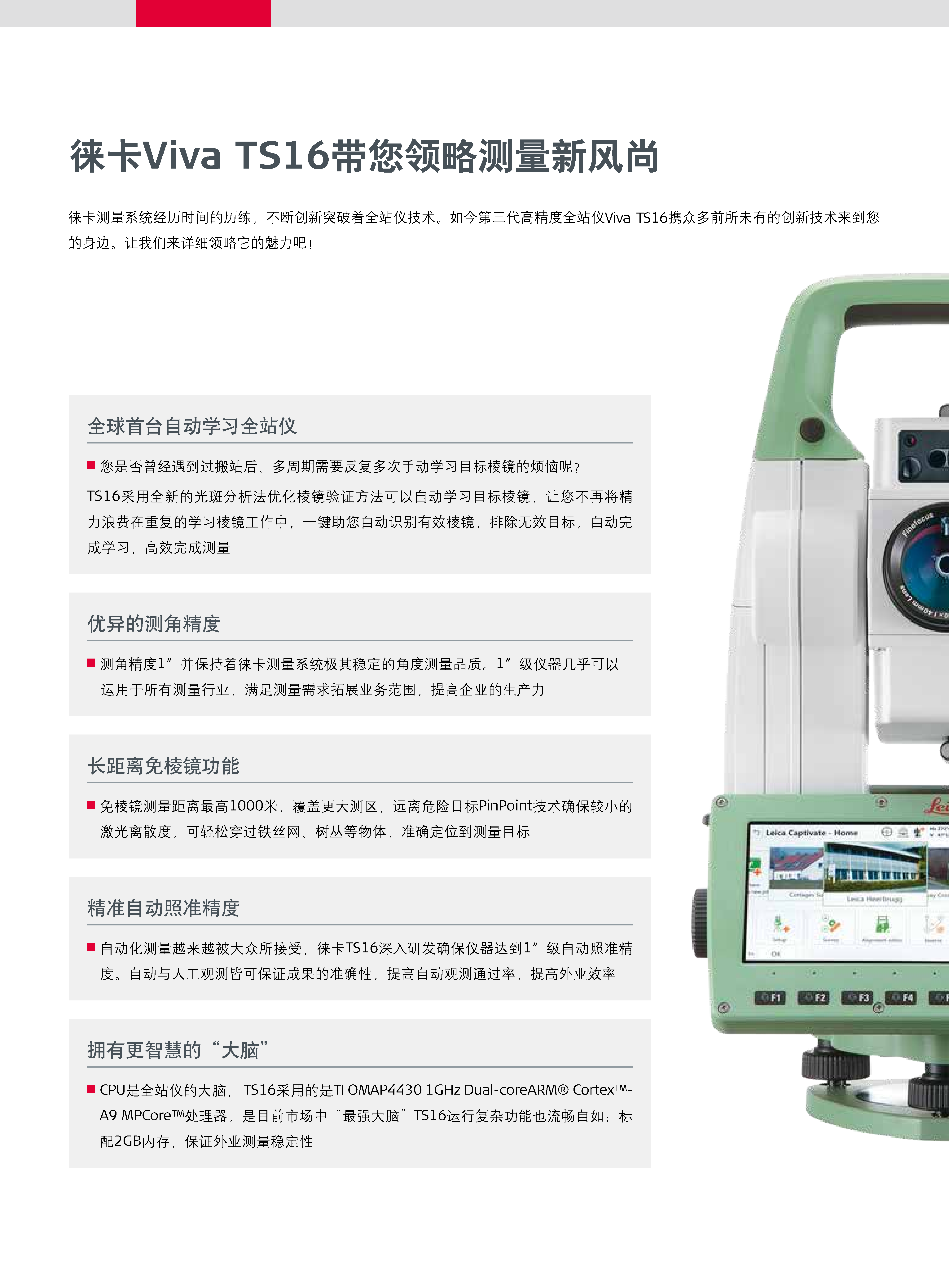 徕卡测量系统经历时间的历练,不断创新突破着全站仪技术。如今第三代高精度全站仪Viva TS16携众多前所未有的创新技术来到您的身边。让我们来详细领略它的魅力吧!