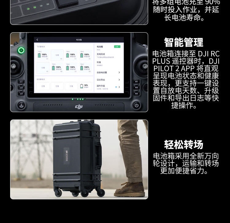 可放置物品:8块TB65智能飞行电池;4块WB37智能电池
