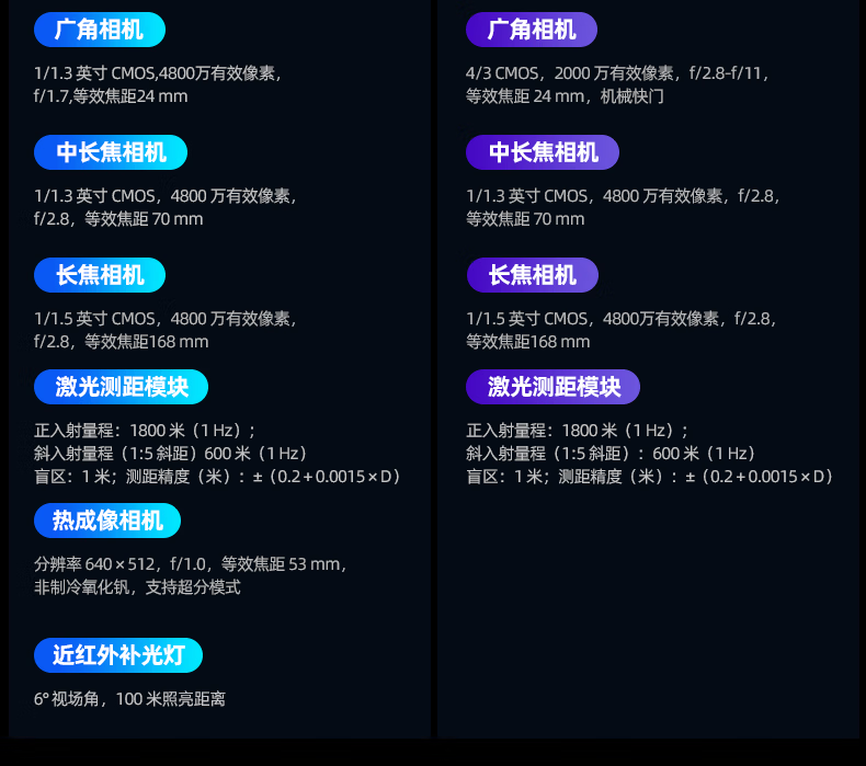 影像传感器:广角1/1.3英寸CMOS,有效像素4800万;中长焦1/1.3英寸CMOS,有效像素4800万;长焦1/1.5英寸CMOS,有效像素4800万