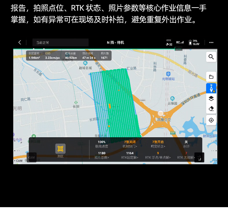 RTK定位精度:水平1厘米+1ppm;垂直1.5厘米+1ppm